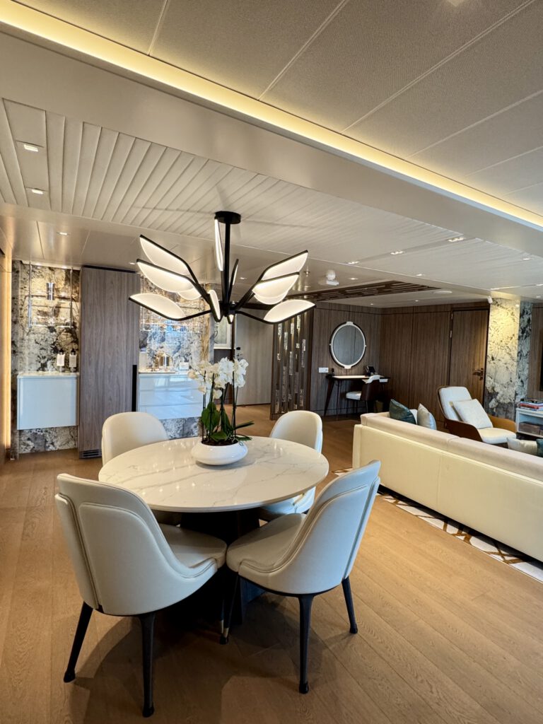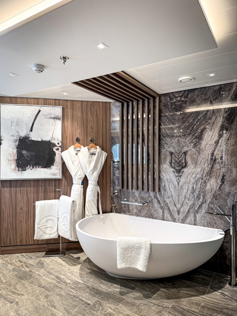 Der Blick in die Vista Suite (161 m²!) war ein kleiner Schock… aber im absolut positivsten Sinne! Mein Highlight: Das traumhafte Badezimmer! Warmes Holz, Naturstein, freistehende Badewanne – ein Raum, der fast zu schön ist, um ihn überhaupt während der Seereise zu verlassen. Auch der Rest der Suite spiegelt den hohen Anspruch der Allura wider: Luxus ohne Kitsch, Eleganz ohne Übertreibung. I like!
